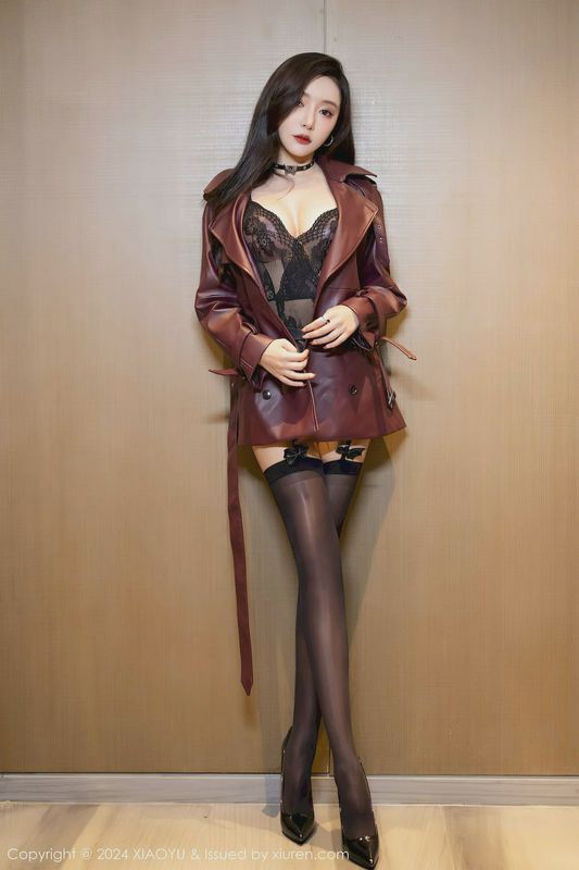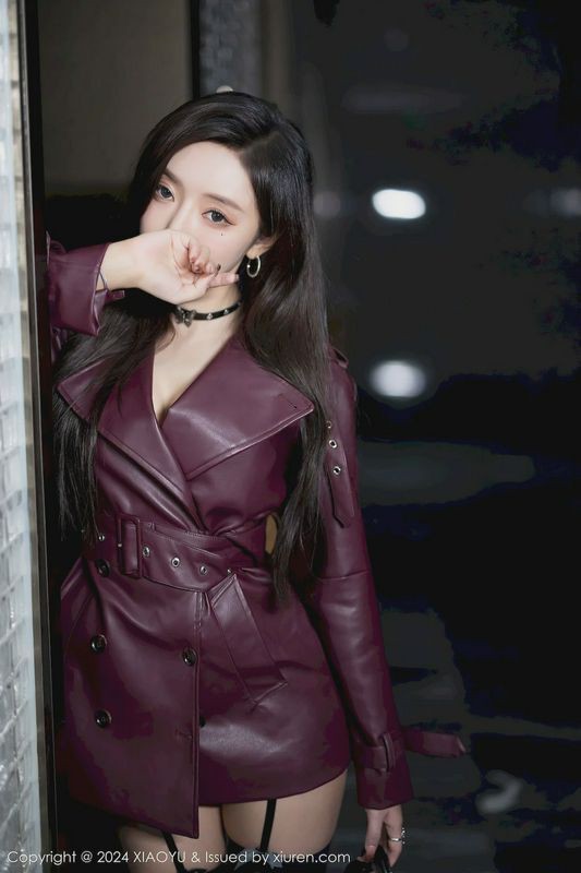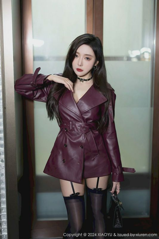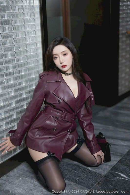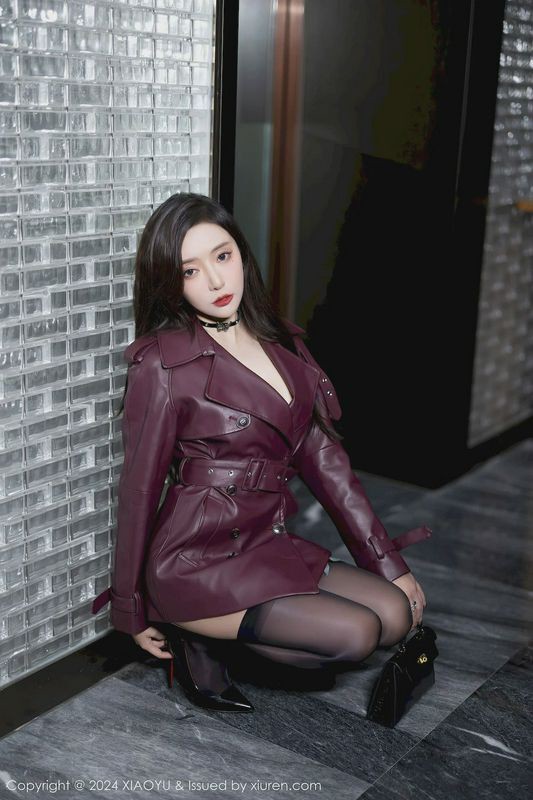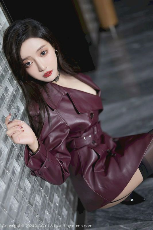 性感女神王馨瑶YANNI暗红色皮外衣黑丝