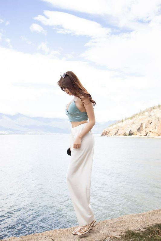 都市丽人芝芝紧身白色长裤